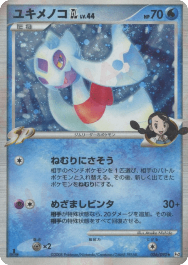 相手のベンチポケモンを1匹選び、相手のバトルポケモンと入れ替える。その後、新しく出てきたポケモンをねむりにする。