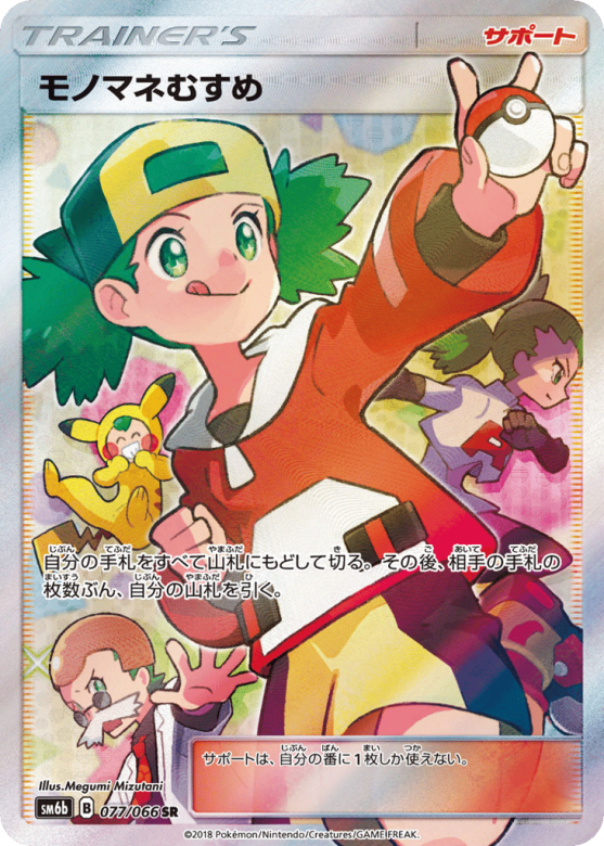 自分の手札をすべて山札にもどして切る。その後、相手の手札の枚数ぶん、自分の山札を引く。 サポートは、自分の番に1枚しか使えない。