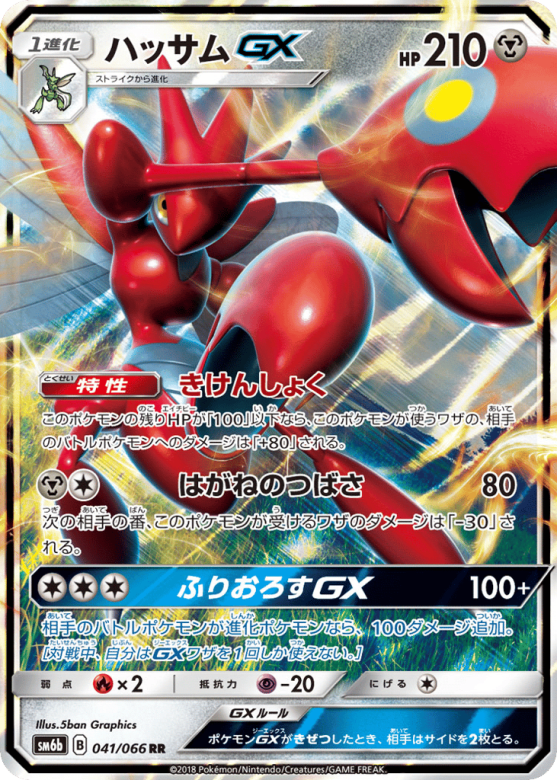 相手のバトルポケモンが進化ポケモンなら、100ダメージ追加。[対戦中、自分はGXワザを1回しか使えない。]