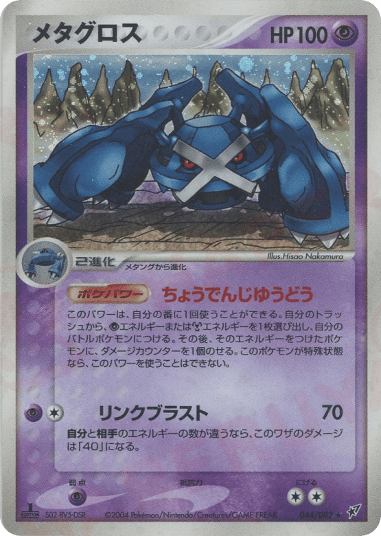 Once during your turn (before your attack), you may search your discard pile for a Psychic or Metal Energy card and attach it to your Active Pokémon. Then, put 1 damage counter on that Pokémon. This power can't be used if Metagross is affected by a Special Condition.