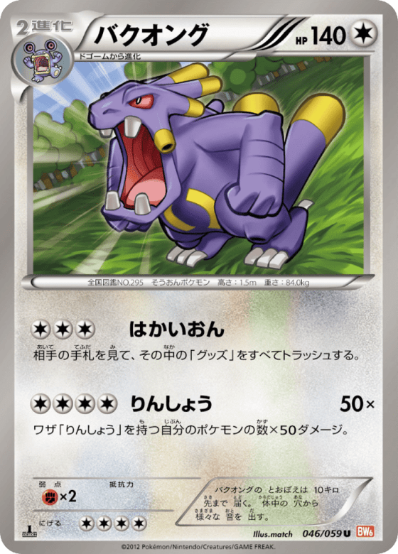 バクオングの とおぼえは 10キロ 先まで 届く。 体中の 穴から 様々な 音を 出す。
