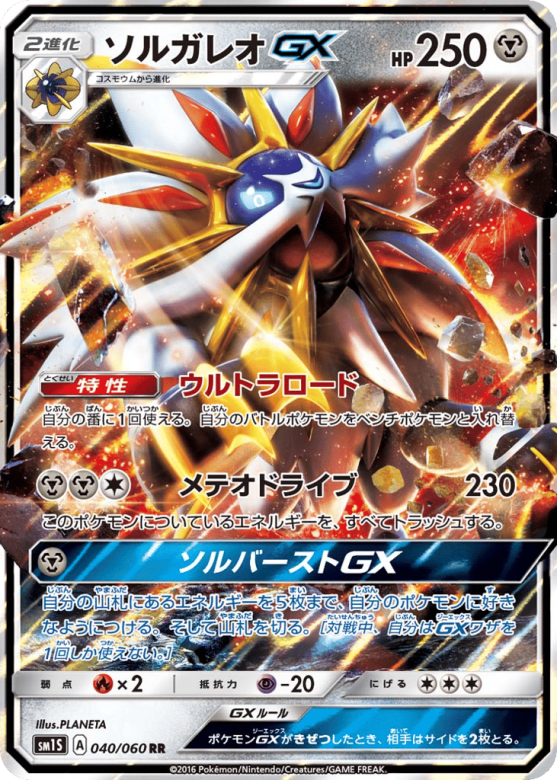 自分の山札にあるエネルギーを5枚まで、自分のポケモンに好きなようにつける。そして山札を切る。[対戦中、自分はGXワザを1回しか使えない。]