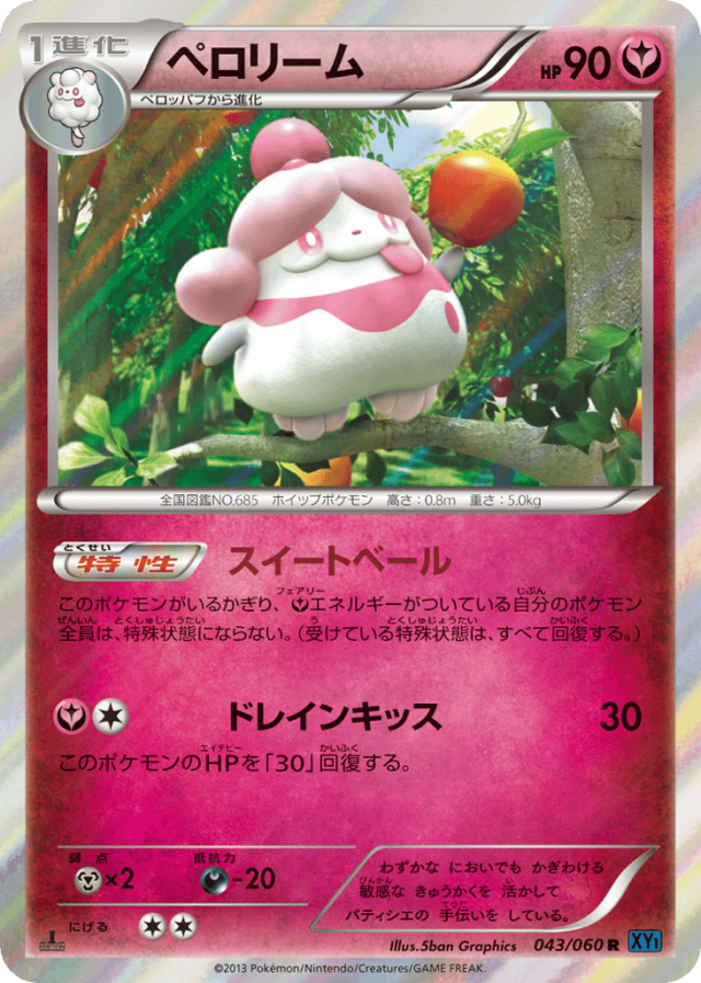 このポケモンがいるかぎり、Fairyエネルギーがついている自分のポケモン全員は、特殊状態にならない。(受けている特殊状態は、すべて回復する。)