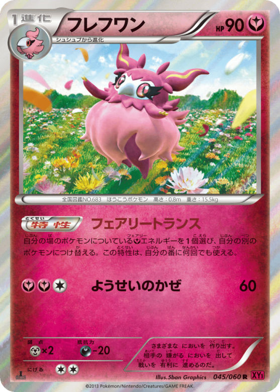 自分の場のポケモンについているFairyエネルギーを1個選び、自分の別のポケモンにつけ替える。この特性は、自分の番に何回でも使える。