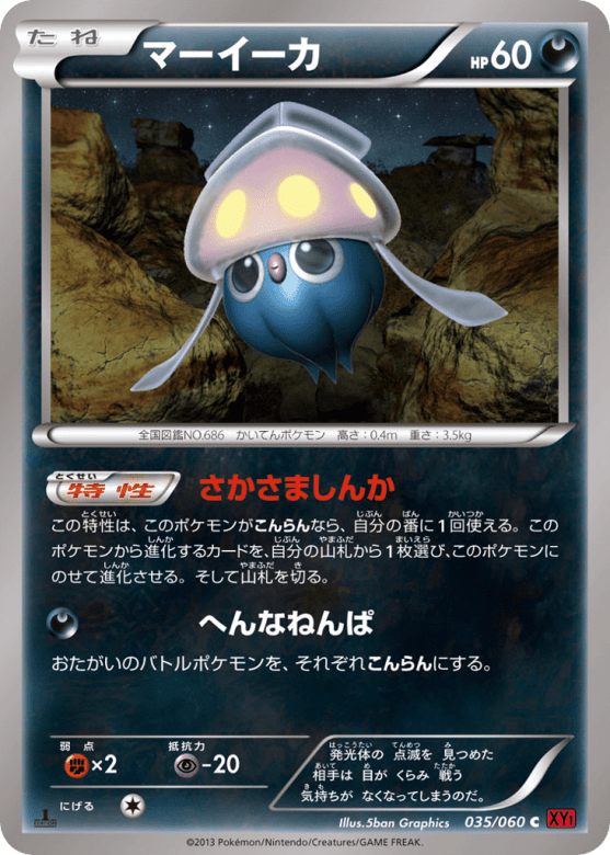 この特性は、このポケモンがこんらんなら、自分の番に1回使える。このポケモンから進化するカードを、自分の山札から1枚選び、このポケモンにのせて進化させる。そして山札を切る。
