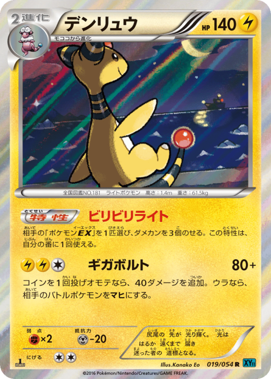 相手の「ポケモンEX」を1匹選び、ダメカンを3個のせる。この特性は、自分の番に1回使える。