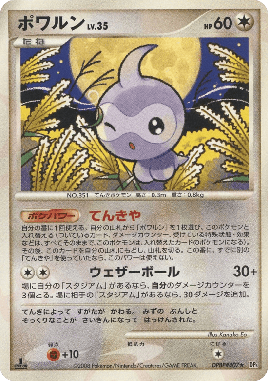 Once during your turn (before your attack), you may search your deck for any Castform and switch it with Castform. (Any cards attached to Castform, damage counters, Special Conditions, and effects on it are now on the new Pokémon.) If you do, put Castform on top of your deck. Shuffle your deck afterward. You can't use more than 1 Temperament Poké-Power each turn.