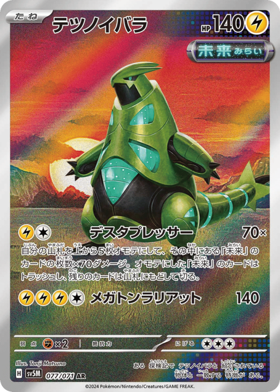 自分の山札を上から5枚オモテにして、その中にある「未来」のカードの枚数×70ダメージ。オモテにした「未来」のカードはトラッシュし、残りのカードは山札にもどして切る。