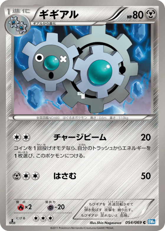 コインを1回投げオモテなら、自分のトラッシュからエネルギーを1枚選び、このポケモンにつける。