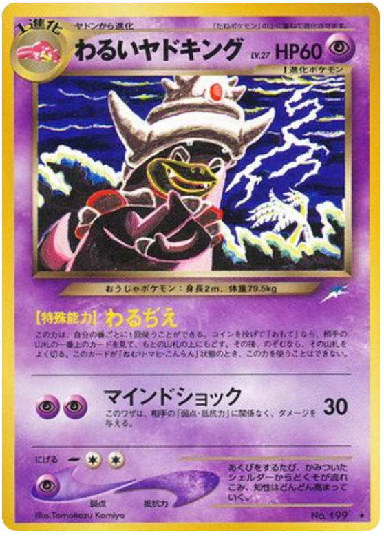 Once during your turn (before your attack), you may flip a coin. If heads, look at the top card of your opponent's deck. Then, you may have your opponent shuffle his or her deck. This power can't be used if Dark Slowking is Asleep, Confused, or Paralyzed.