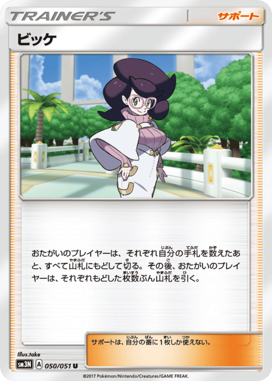 おたがいのプレイヤーは、それぞれ自分の手札を数えたあと、すべて山札にもどして切る。その後、おたがいのプレイヤーは、それぞれもどした枚数ぶん山札を引く。 サポートは、自分の番に1枚しか使えない。