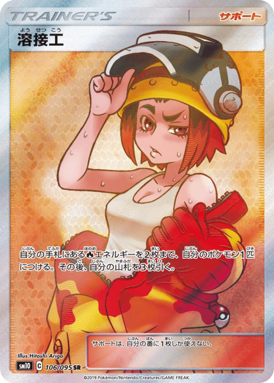 自分の手札にあるFireエネルギーを2枚まで、自分のポケモン1匹につける。その後、自分の山札を3枚引く。 サポートは、自分の番に1枚しか使えない。