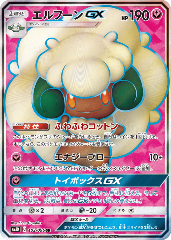 自分の山札にある好きなカードを5枚まで、手札に加える。そして山札を切る。[対戦中、自分はGXワザを1回しか使えない。]