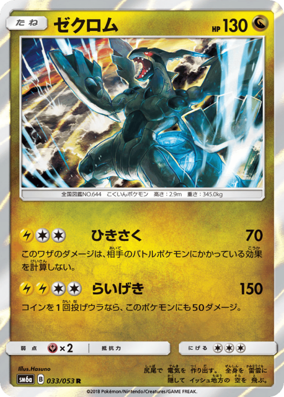 尻尾で 電気を 作り出す。 全身を 雷雲に 隠して イッシュ地方の 空を 飛ぶ。
