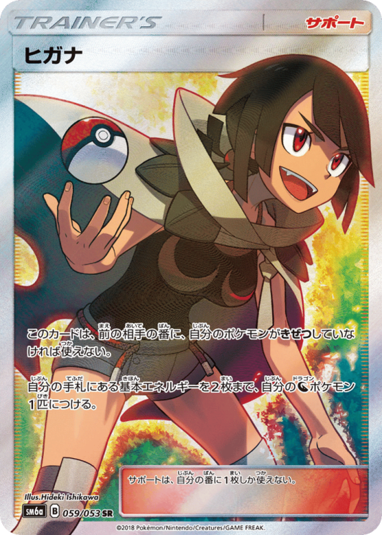 このカードは、前の相手の番に、自分のポケモンがきぜつしていなければ使えない。 自分の手札にある基本エネルギーを2枚まで、自分のDragonポケモン1匹につける。 サポートは、自分の番に1枚しか使えない。