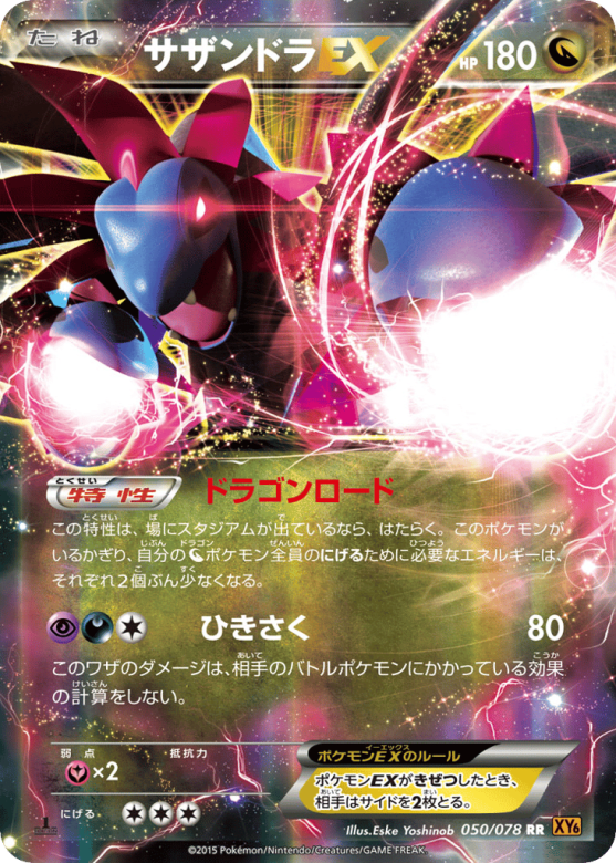 この特性は、場にスタジアムが出ているなら、はたらく。このポケモンがいるかぎり、自分のDragonポケモン全員のにげるために必要なエネルギーは、それぞれ2個ぶん少なくなる。
