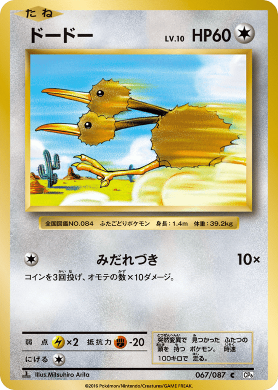 突然変異で 見つかった ふたつの 頭を 持つ ポケモン。 時速 100キロで 走る。