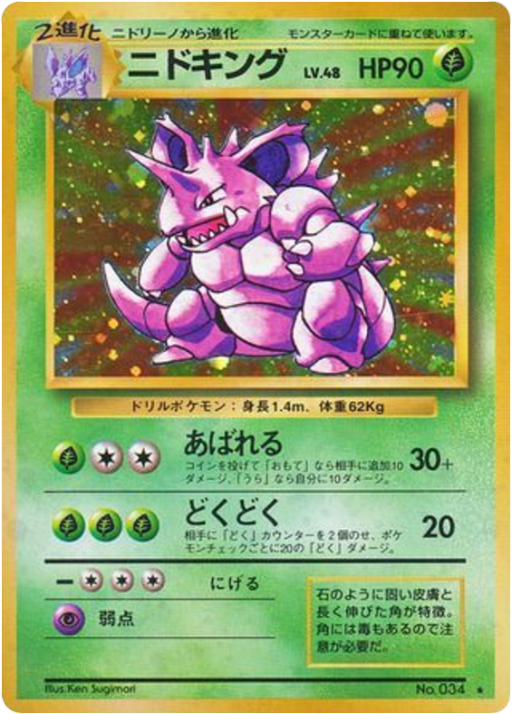 Flip a coin. If heads, this attack does 30 damage plus 10 more damage; if tails, this attack does 30 damage and Nidoking does 10 damage to itself.