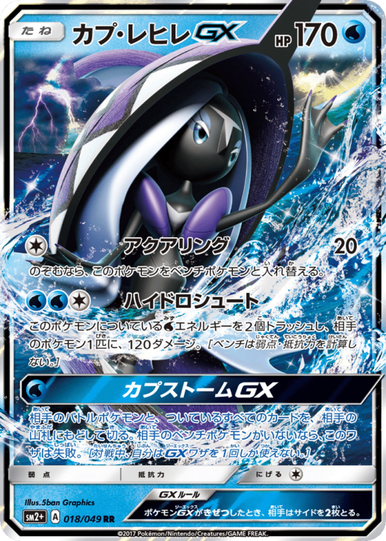 このポケモンについているWaterエネルギーを2個トラッシュし、相手のポケモン1匹に、120ダメージ。[ベンチは弱点・抵抗力を計算しない。]