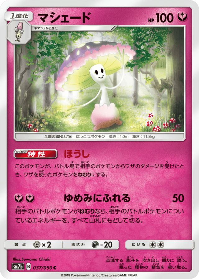 このポケモンが、バトル場で相手のポケモンからワザのダメージを受けたとき、ワザを使ったポケモンをねむりにする。