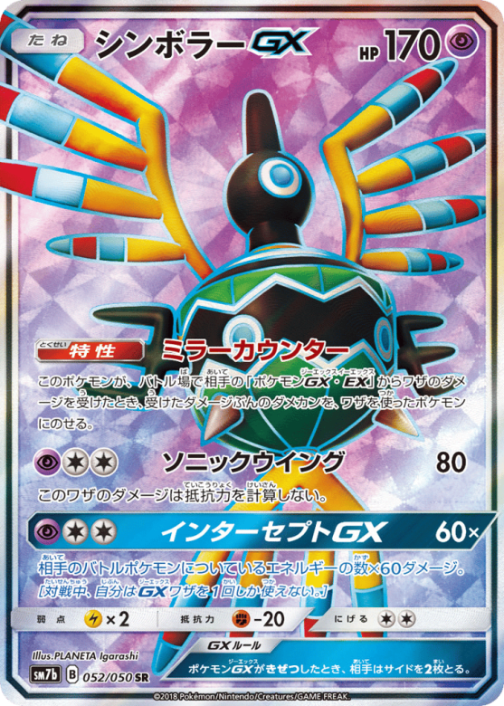相手のバトルポケモンについているエネルギーの数×60ダメージ。[対戦中、自分はGXワザを1回しか使えない。]