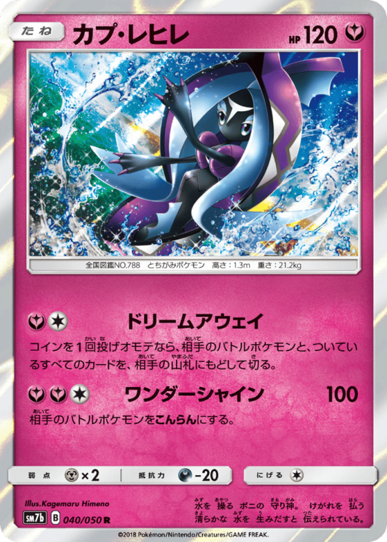 コインを1回投げオモテなら、相手のバトルポケモンと、ついているすべてのカードを、相手の山札にもどして切る。