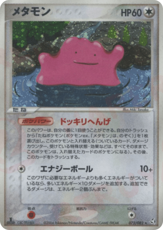 Once during your turn (before your attack), you may search your discard pile for a Basic Pokémon (excluding Pokémon-ex and Ditto) and switch it with Ditto. (Any cards attached to Ditto, damage counters, Special Conditions, and effects on it are now on the new Pokémon.) Place Ditto in the discard pile.