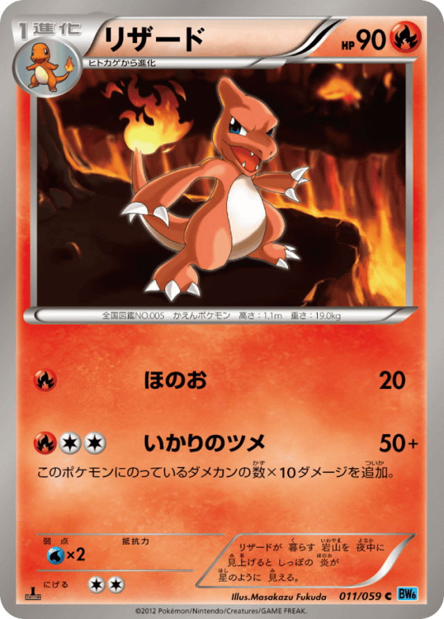 リザードが 暮らす 岩山を 夜中に 見上げると しっぽの 炎が 星のように 見える。