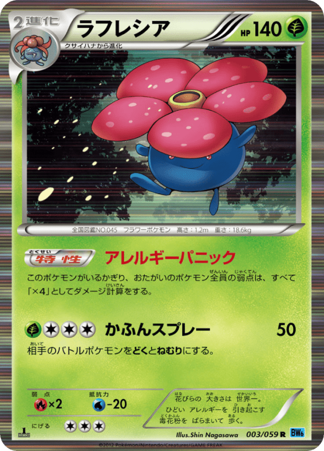花びらの 大きさは 世界一。 ひどい アレルギーを 引き起こす 毒花粉を ばらまいて 歩く。