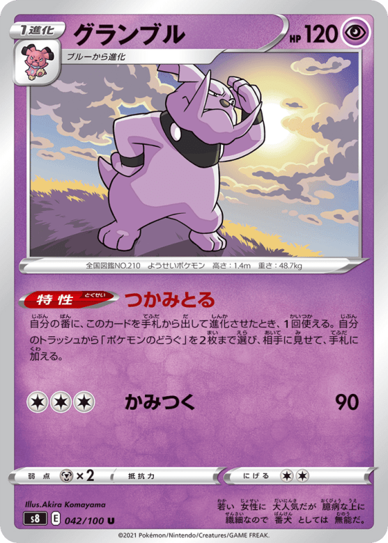 自分の番に、このカードを手札から出して進化させたとき、1回使える。自分のトラッシュから「ポケモンのどうぐ」を2枚まで選び、相手に見せて、手札に加える。