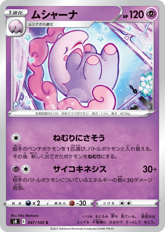 相手のベンチポケモンを1匹選び、バトルポケモンと入れ替える。その後、新しく出てきたポケモンをねむりにする。
