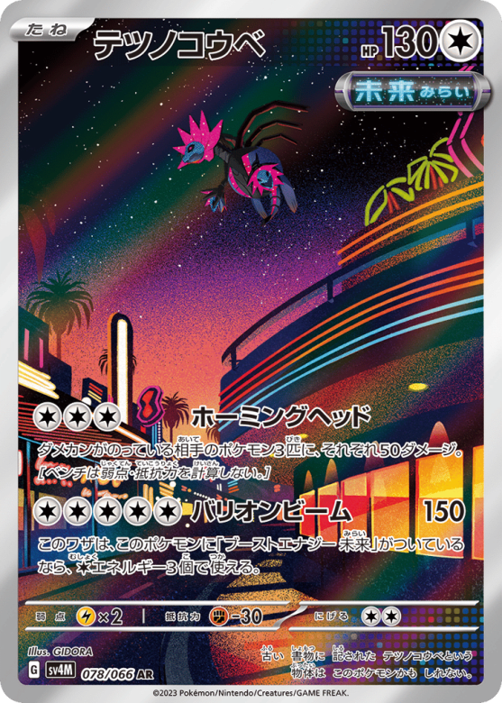 このワザは、このポケモンに「ブーストエナジー 未来」がついているなら、Colorlessエネルギー3個で使える。