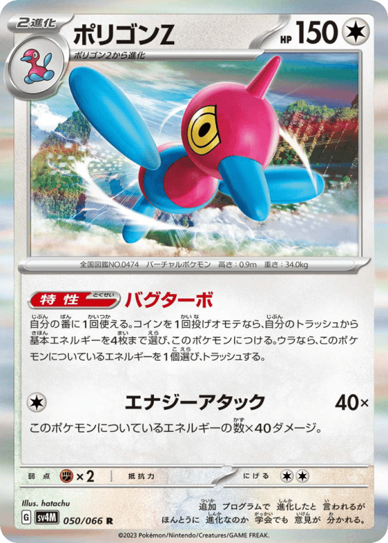 自分の番に1回使える。コインを1回投げオモテなら、自分のトラッシュから基本エネルギーを4枚まで選び、このポケモンにつける。ウラなら、このポケモンについているエネルギーを1個選び、トラッシュする。