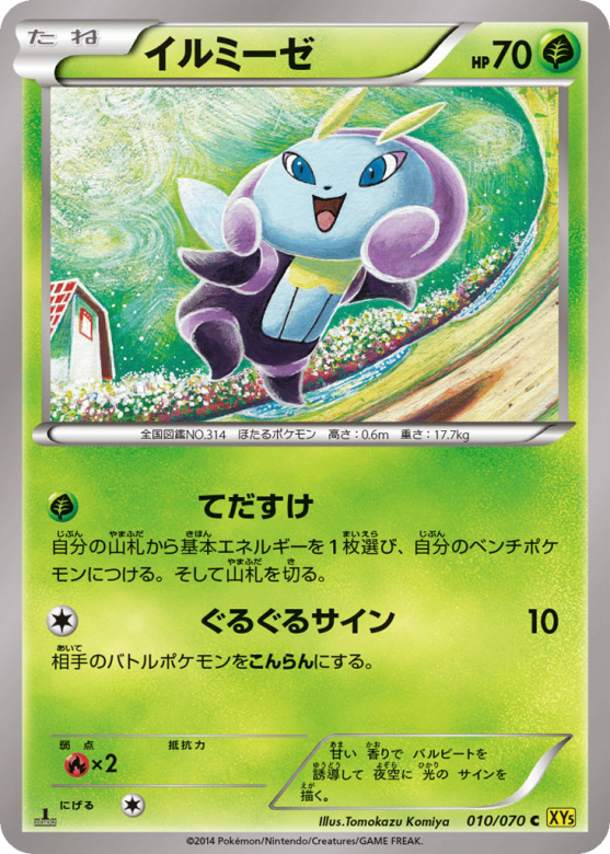 自分の山札から基本エネルギーを1枚選び、自分のベンチポケモンにつける。そして山札を切る。