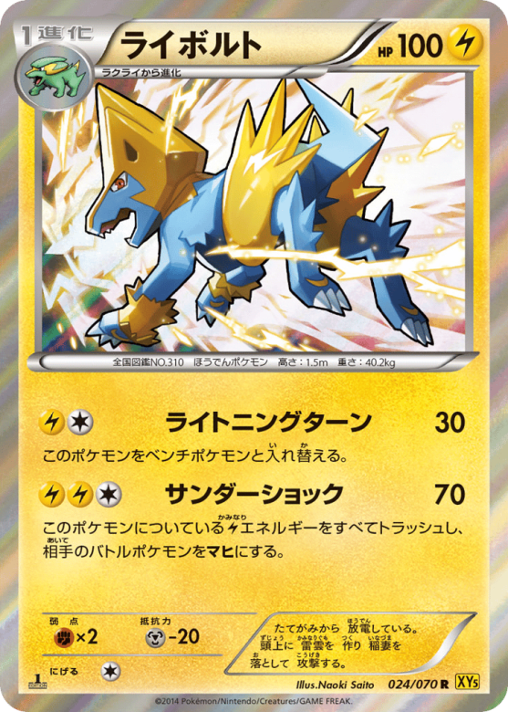 このポケモンについているElectricエネルギーをすべてトラッシュし、相手のバトルポケモンをマヒにする。