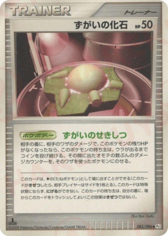 During your opponent's turn, if Skull Fossil would be Knocked Out by damage from an opponent's attack, flip a coin until you get tails. For each heads, put 1 damage counter on the Attacking Pokémon.