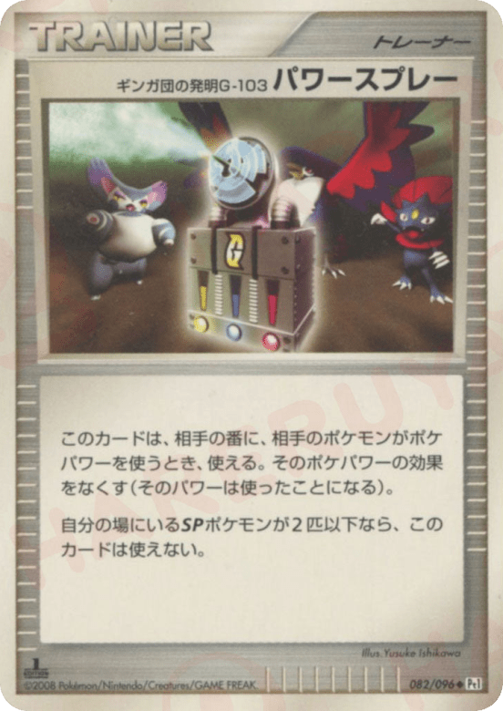 このカードは、相手の番に、相手のポケモンがポケパワーを使うとき、使える。そのポケパワーの効果をなくす(そのパワーは使ったことになる)。<br> 自分の場にいるSPポケモンが2匹以下なら、このカードは使えない。 グッズは、自分の番に何枚でも使える。