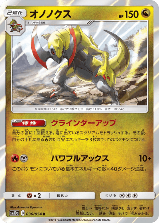 自分の番に1回使える。場に出ているスタジアムをトラッシュする。その後、自分の手札にあるFireエネルギーを3枚まで、このポケモンにつける。