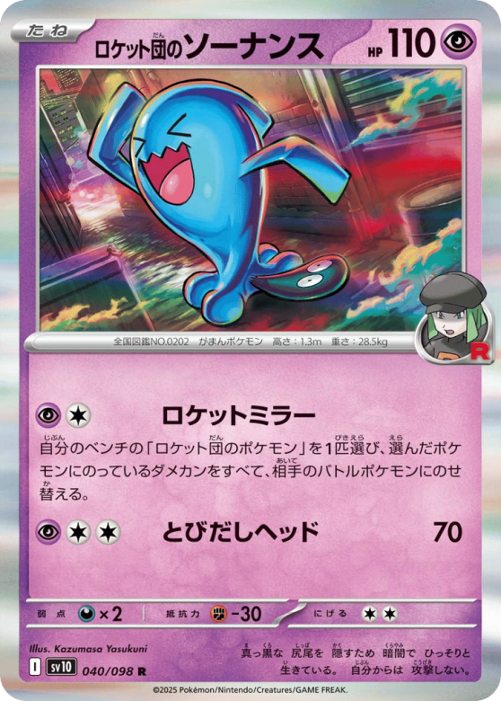 自分のベンチの「ロケット団のポケモン」を1匹選び、選んだポケモンにのっているダメカンをすべて、相手のバトルポケモンにのせ替える。