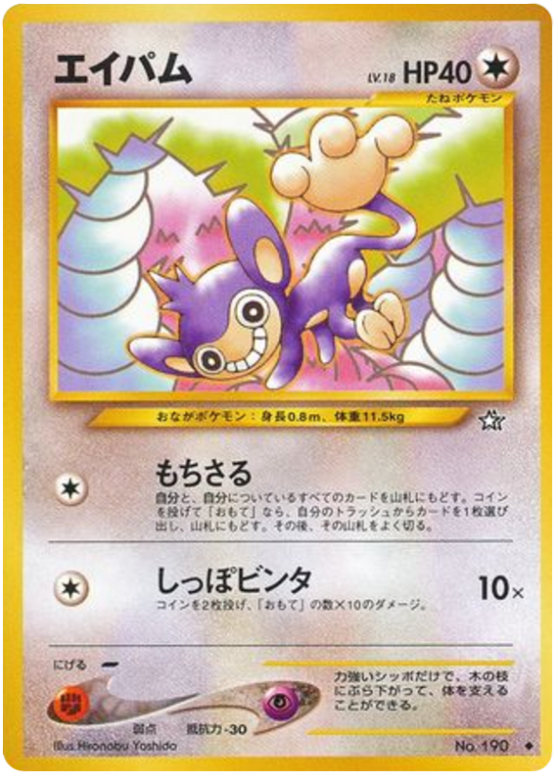 Shuffle Aipom and all cards attached to it into your deck. Flip a coin. If heads, shuffle a card from your discard pile into your deck.