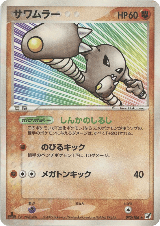 As long as Hitmonlee is an Evolved Pokémon, Hitmonlee's attacks do 20 more damage to your opponent's Pokémon (before applying Weakness and Resistance).