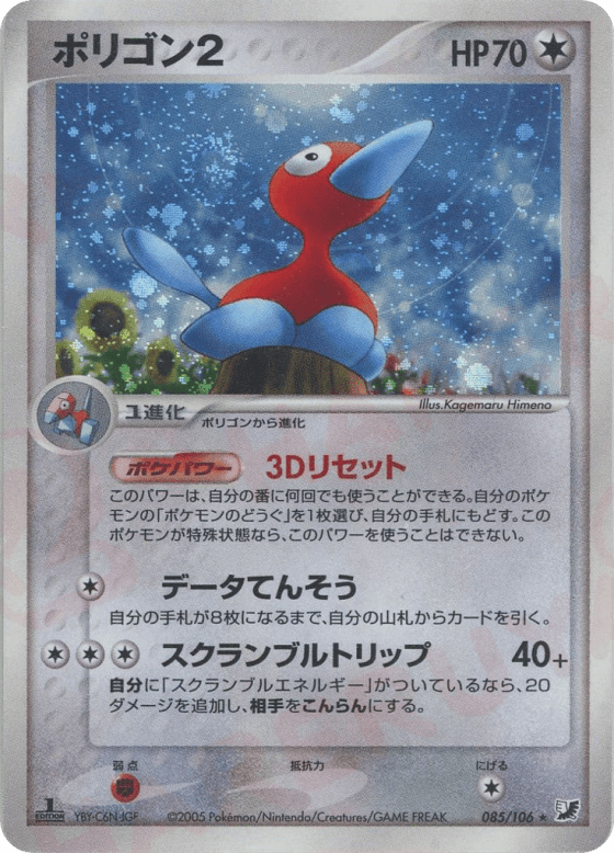 If Porygon2 has a Scramble Energy card attached to it, this attack does 40 damage plus 20 more damage and the Defending Pokémon is now Confused.