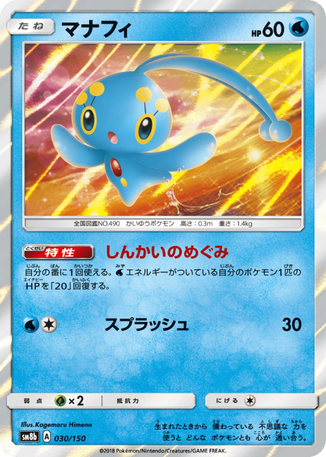 自分の番に1回使える。Waterエネルギーがついている自分のポケモン1匹のHPを「20」回復する。