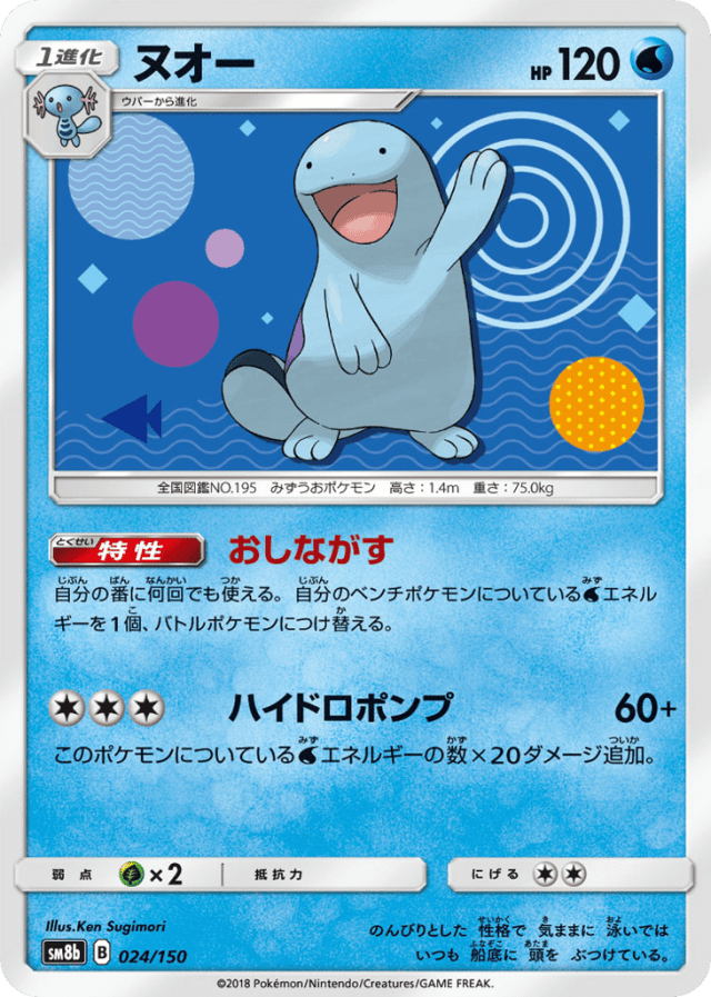 自分の番に何回でも使える。自分のベンチポケモンについているWaterエネルギーを1個、バトルポケモンにつけ替える。