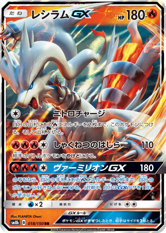 のぞむなら、自分の手札にあるFireエネルギーを5枚まで、自分のポケモンに好きなようにつける。[対戦中、自分はGXワザを1回しか使えない。]