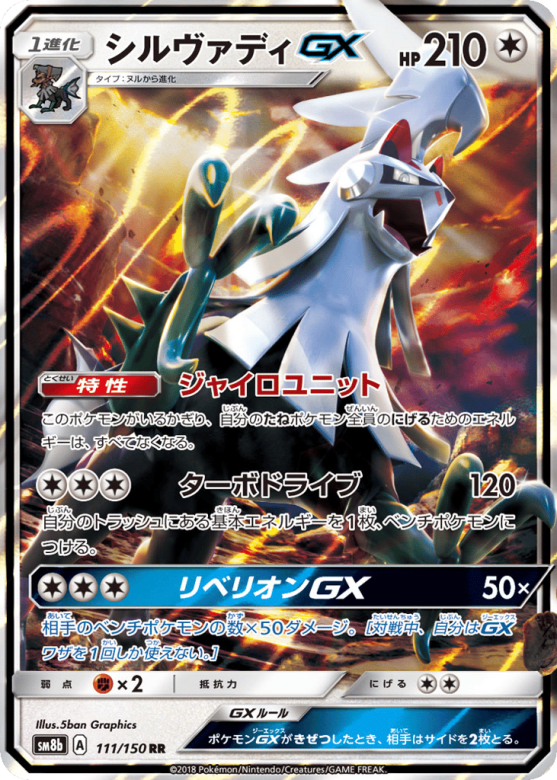 相手のベンチポケモンの数×50ダメージ。[対戦中、自分はGXワザを1回しか使えない。]
