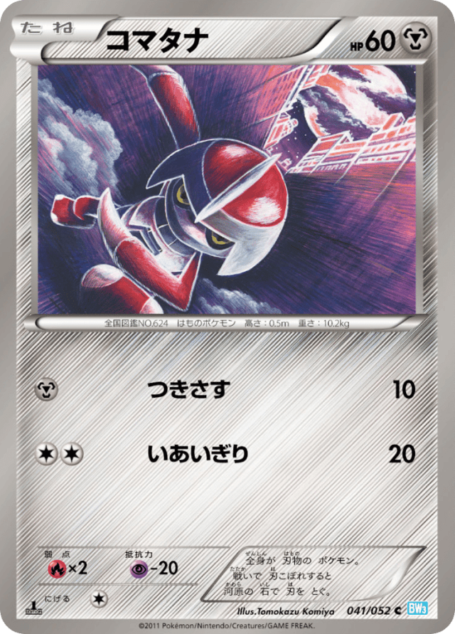 全身が 刃物の ポケモン。 戦いで 刃こぼれすると 河原の 石で 刃を とぐ。
