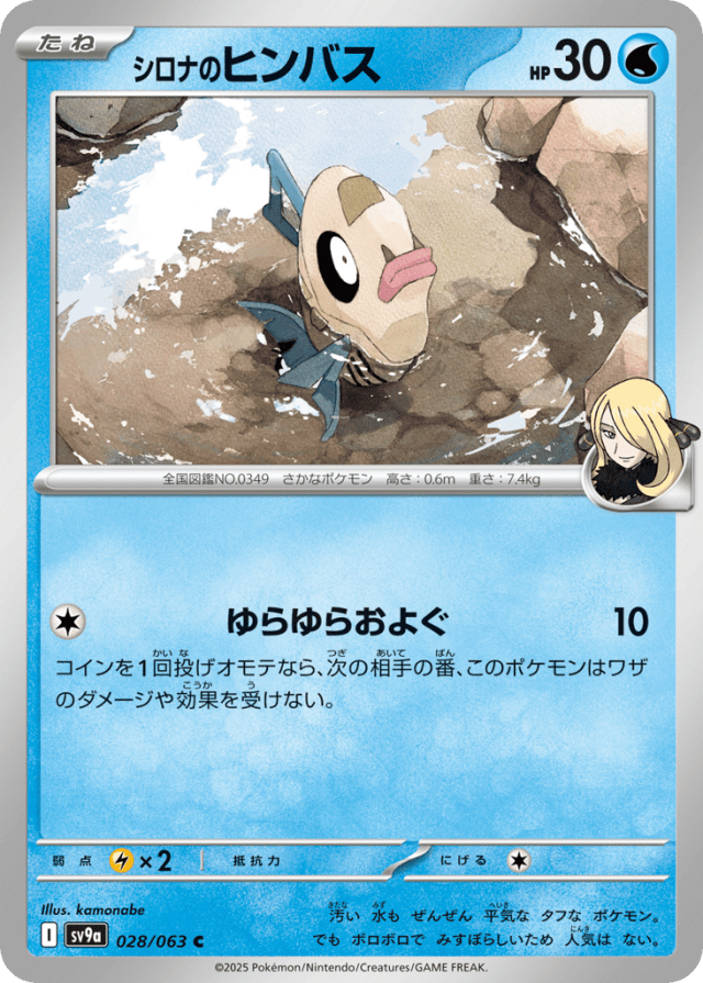 コインを1回投げオモテなら、次の相手の番、このポケモンはワザのダメージや効果を受けない。