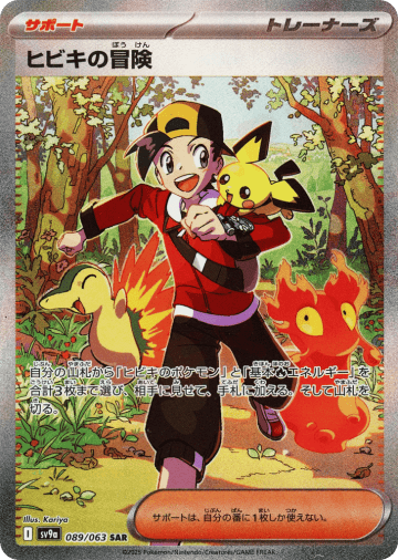 このポケモンから進化するカードを、自分の山札から1枚選び、このポケモンにのせて進化させる。そして山札を切る。
