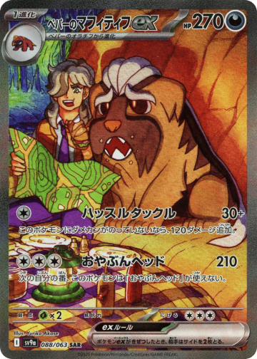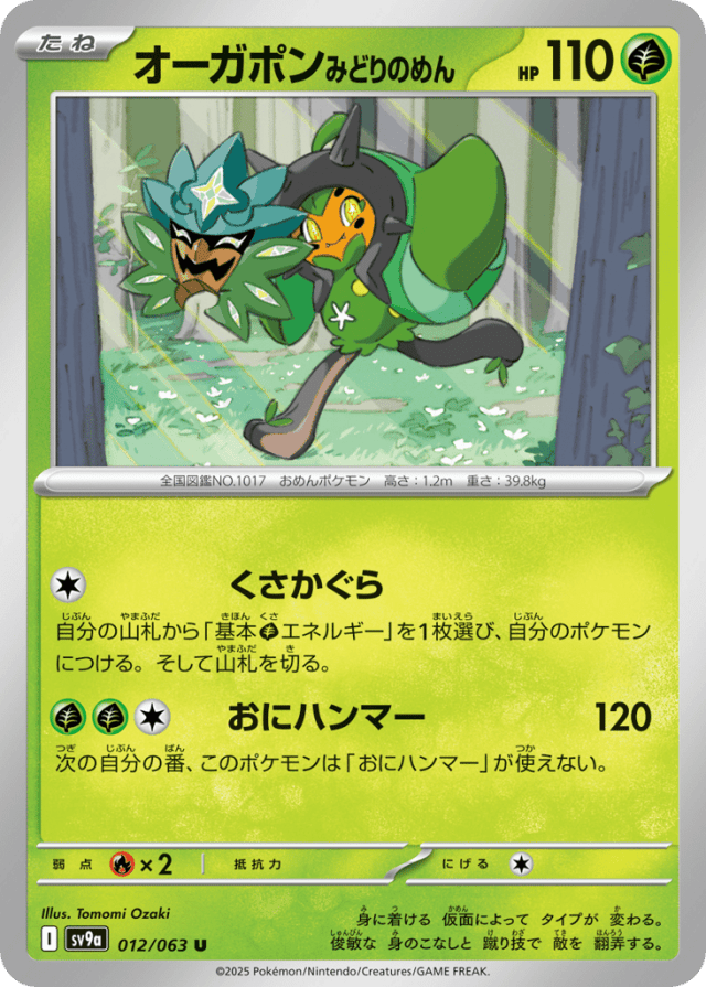 身に着ける 仮面によって タイプが 変わる。 俊敏な 身のこなしと 蹴り技で 敵を 翻弄する。 (This Pokémon's type changes based on which mask it's wearing. It confounds its enemies with nimble movements and kicks.)